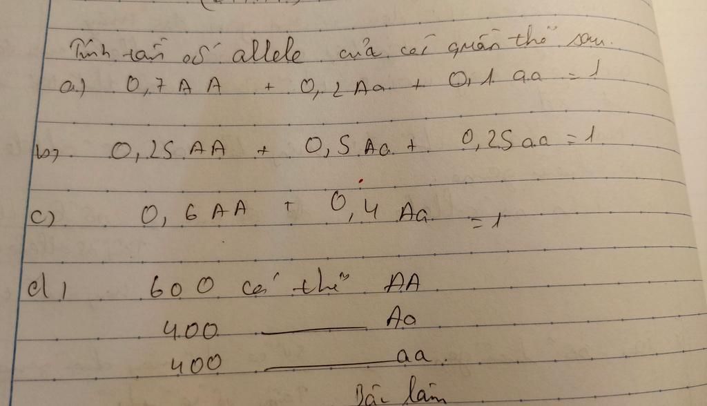 Câu a, b, c "Aa" chia đôi; d ko biết