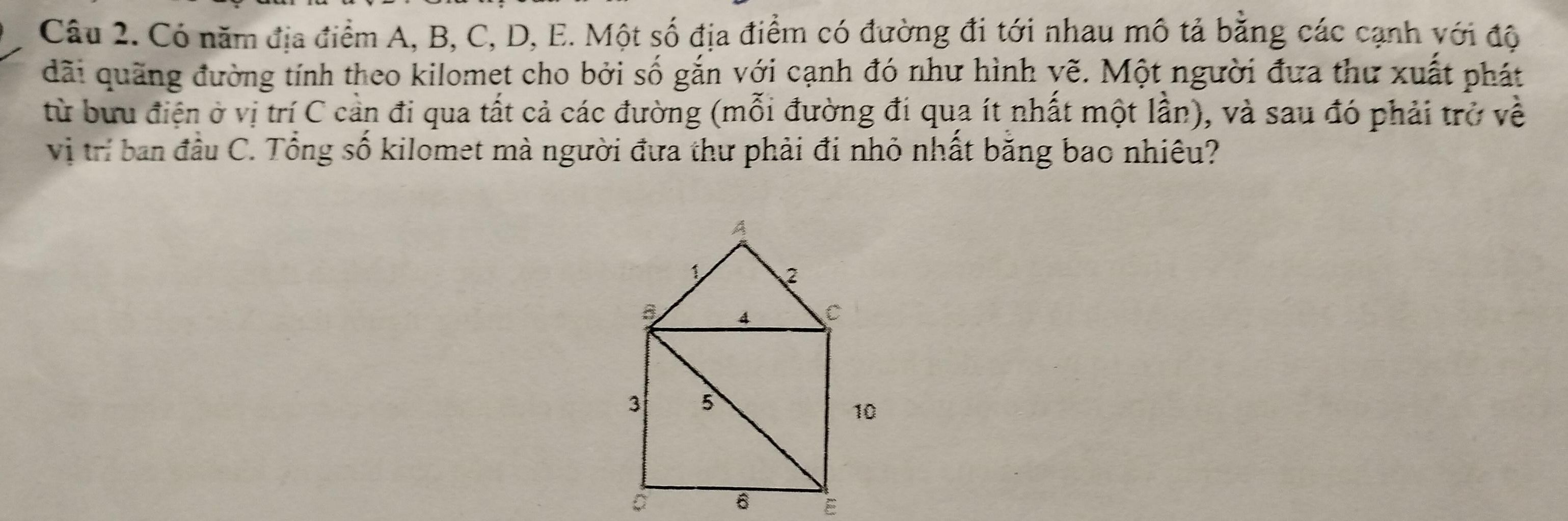 Vậy tổng số km người đưa thư phải đi nhỏ nhất là $20$ km