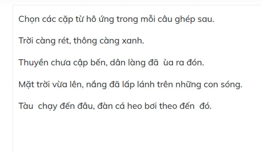 `***` Chọn cặp từ hô ứng trong mỗi câu ghép: