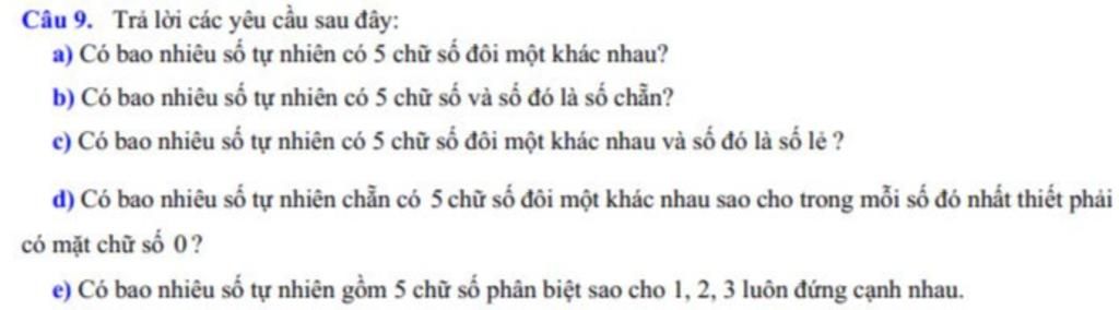 a) Có bao nhiêu số tự nhiên có 5 chữ số đôi một khác nhau?