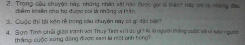 `3)` Cuộc thi tài kén rể trong câu chuyện này đặc biệt vì không chỉ là một cuộc thi chọn chồng cho Mị Nương mà còn là thử thách về trí tuệ, dũng cảm và sức mạnh. Nhà vua không thể chọn được người phù hợp, nên đưa ra yêu cầu sính lễ và thử thách về thời gian chỉ có thể thực hiện trên cạn. Điều này phần nào phản ánh sự ưu ái của vua Hùng và nhân dân đối với Sơn Tinh, vị thần của núi rừng. Cuộc thi không chỉ là thử thách bình thường mà còn thể hiện niềm tin vào sức mạnh và giá trị thiên nhiên, với Sơn Tinh là người mang lại lợi ích và sự sống cho con người.