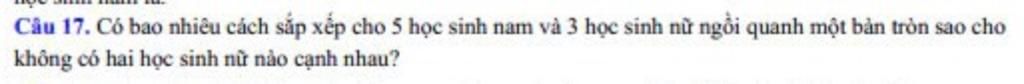 Sắp xếp `5` bạn nam xung quanh bàn tròn có `4!` cách