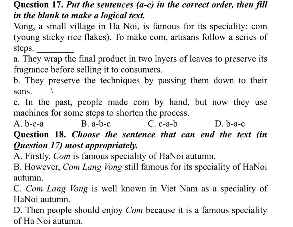 `-` `c)` Trước đây người ta làm cốm bằng tay nhưng bây giờ họ sử dụng máy móc một số công đoạn để rút ngắn quy trình