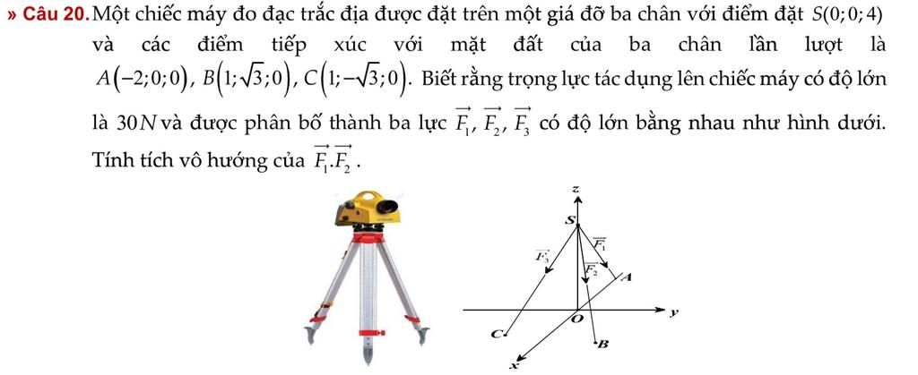 `=>` `vec(F_1)=5/2vec(SA)=(-5;0;-10)` và `vec(F_2)=5/2vec(SB)=(5/2;(5sqrt3)/2;-10)`
