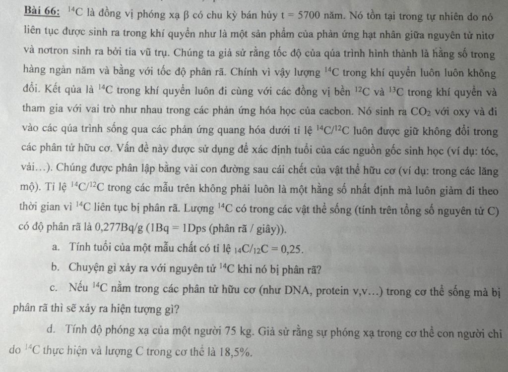 $N_{^{14}C}^o = 0,2.6,022.10^{23} = 1,2044.10^{23}$ (nguyên tử)