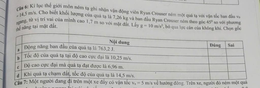 \({{\rm{W}}_{{d_0}}} = \dfrac{1}{2}mv_0^2 = \dfrac{1}{2}.7,26.14,{5^2} = 763,2075J\)