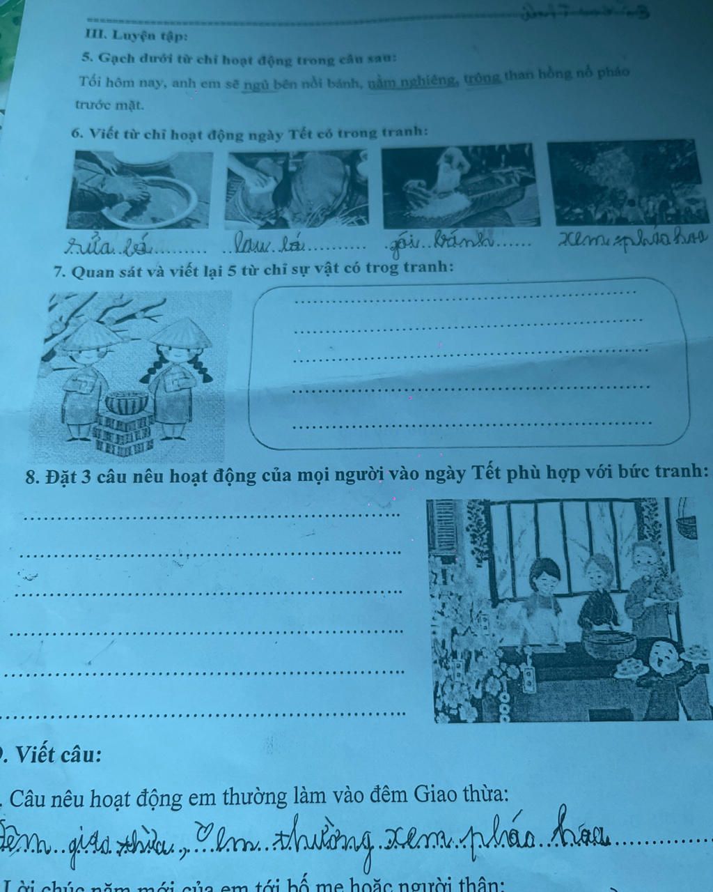 1.Vào dịp tết, mẹ em thường chuẩn bị thức ăn cho cả nhà.