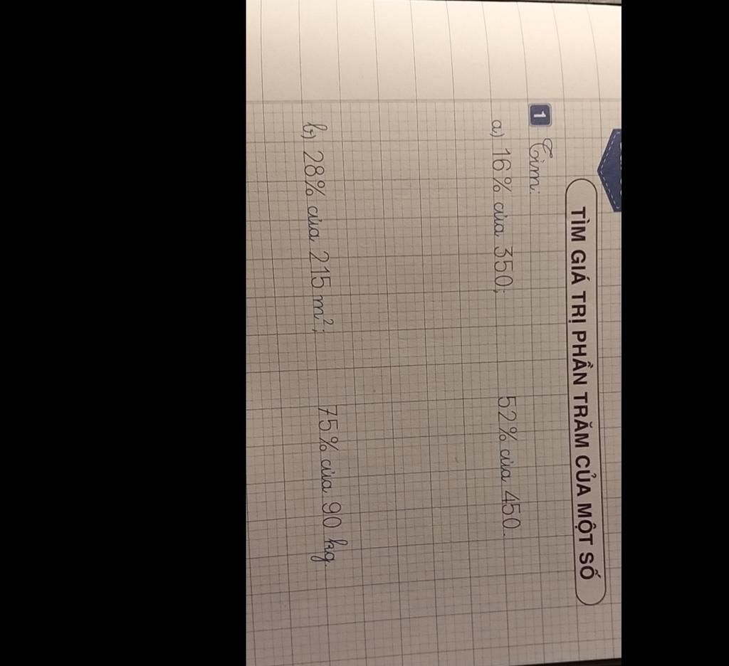 a) `16%` của `350` là `350 : 100 xx 16 =56`
