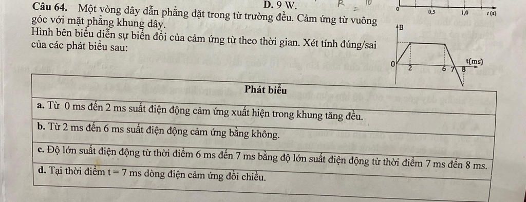 Từ `6ms to 8ms` thì `[DeltaB]/[Deltat] = const to e_c = const` nên suất điện động từ `6ms to 7ms` bằng suất điện động từ `7ms to 8ms`.