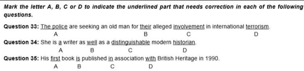 `33. B: their -> his `