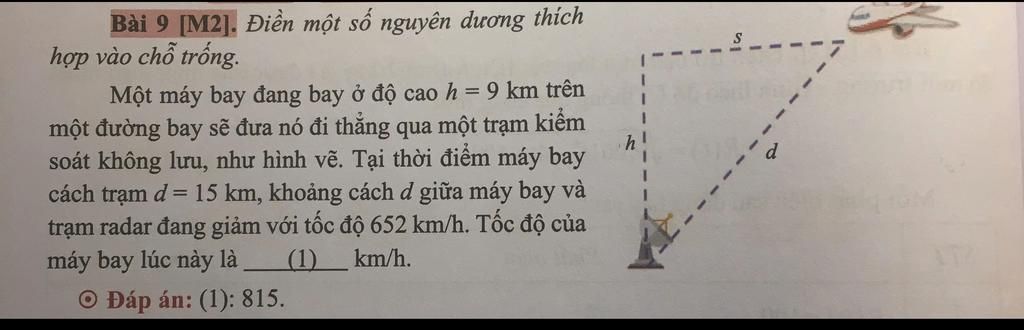 Độ cao của máy bay so với trạm kiểm soát không lưu là $h=9$ km