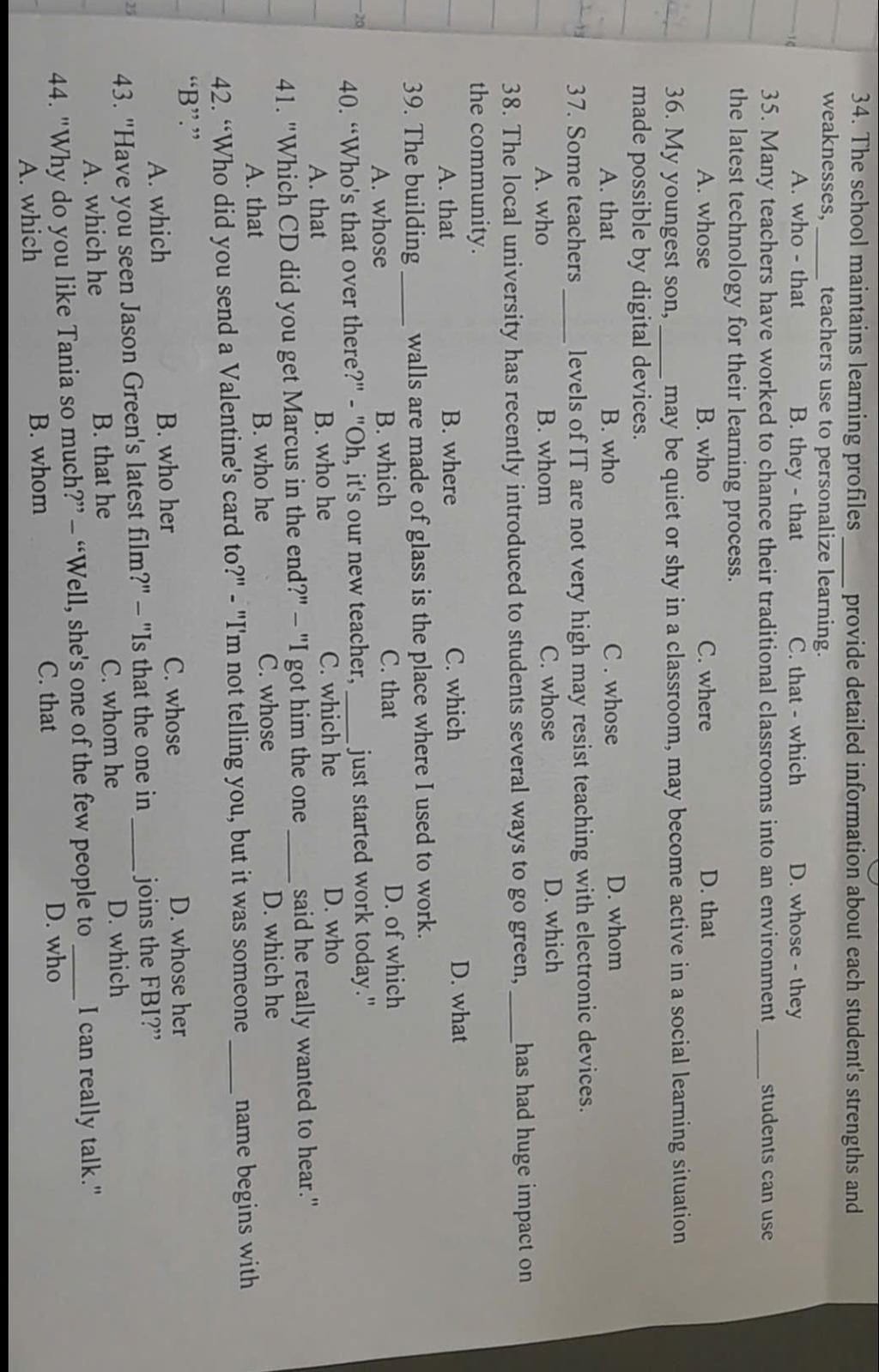 ` text\{! Lưu ý ! :} ` Sau Whose thường là một N (Danh từ)