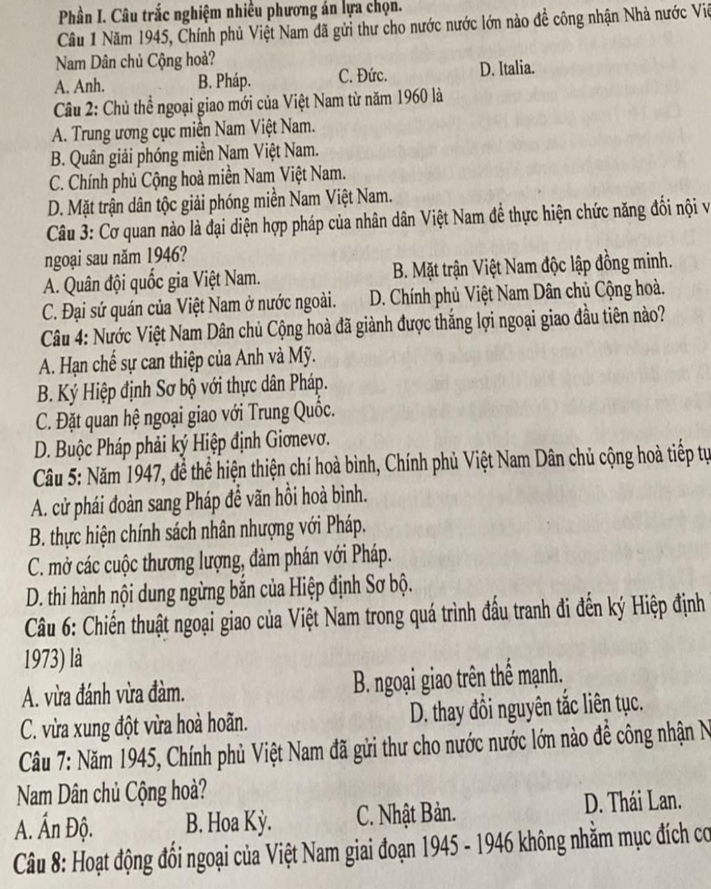 ` - ` Giải thích : Năm ` 1945 `, Chính phủ Việt Nam gửi thư cho Pháp đề nghị thiết lập quan hệ ngoại giao nhưng Pháp vẫn tiếp tục xâm lược Việt Nam.