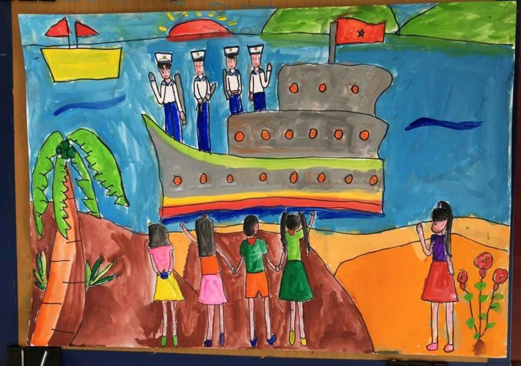 Bức tranh tên là Bạn của hòa bình. Thông điệp bức tranh mang ý nghĩa niềm hy sinh lớn lao, cao cả của các chú hải quân dành cho Tổ quốc Việt Nam, mọi ng vẫn sẽ mãi mãi ghi nhớ công ơn của các chú.