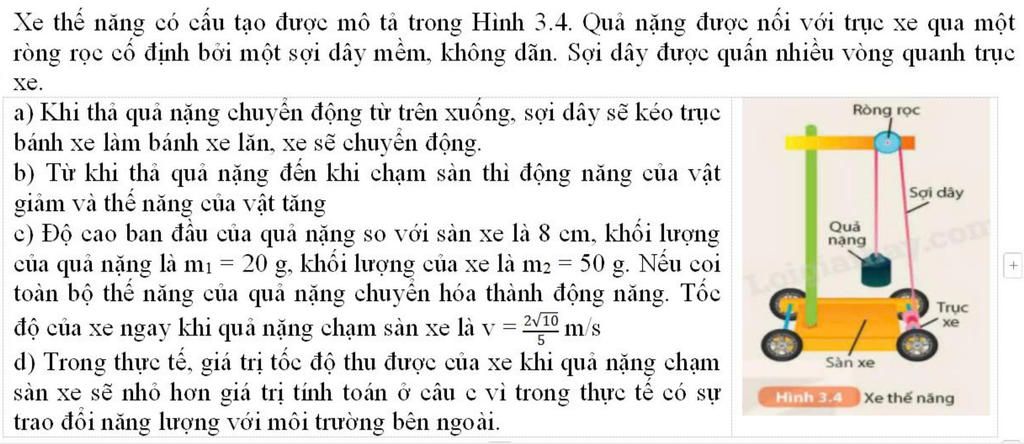 Xe thế năng có cấu tạo được mô tả trong Hình 3.4. Quả nặng được nối với trục xe qua một