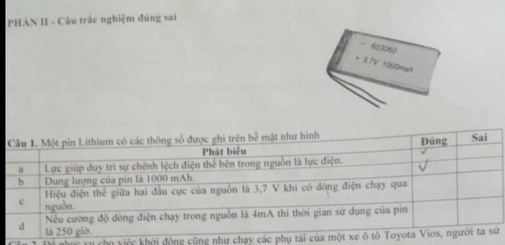 a) Lực giúp duy trì sự chênh lệch điện thế bên trong nguồn điện không phải là lực điện, mà là lực lạ.