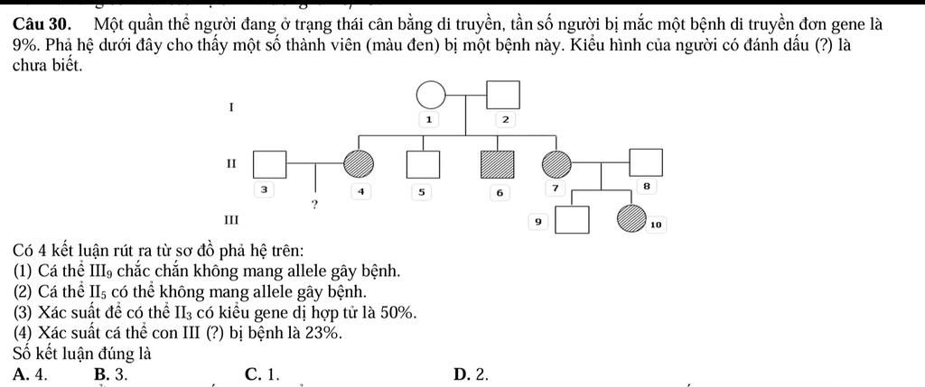`=>` Người $(9)$ có thể mang giao tử gây bệnh được nhận từ người $(7)$