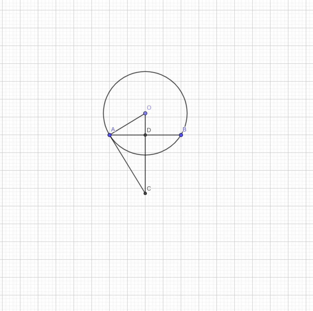 Câu 8: Cho đường tròn (O;15cm), dây AB không đi qua tâm. Vẽ đường thẳng a tiếp xúc với (O) tại A. Qua O vẽ đường thẳng vuông góc với AB cắt đường thẳng a tại C và cắt AB ở D, biết AB = 24 cm. Độ dài đoạn thẳng OC là