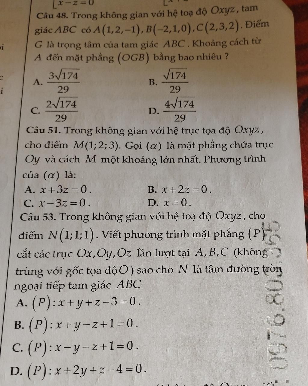 `->x-3z=0` (`a=0` thì không tồn tại mặt phẳng)