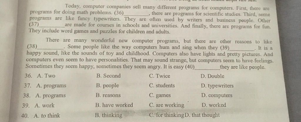 - Câu sau có 'like the way computers...' (thích cái cách mà máy tính...) -> đang nói về máy tính