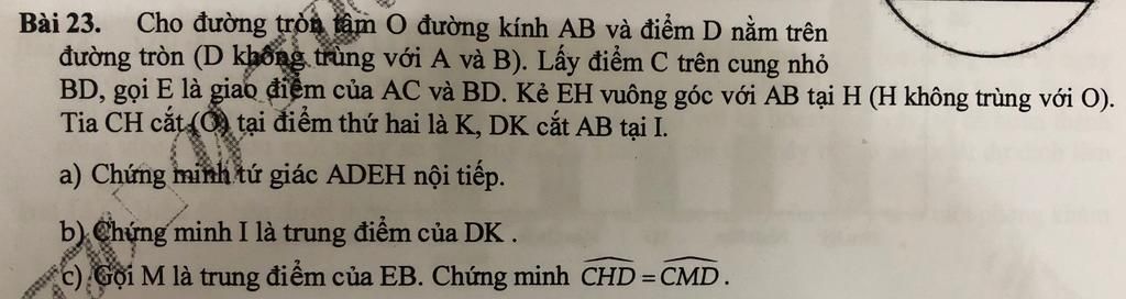 b.Ta có: $\widehat{EHB}=\widehat{ECB}=90^o$