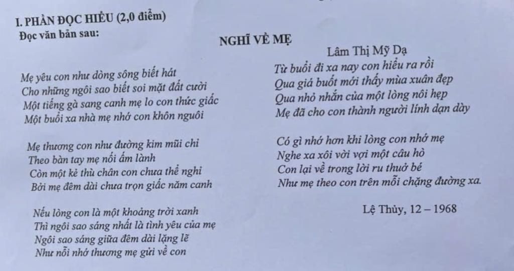`+` Nội dung: Mẹ hiện lên như người thợ lành nghề, tỉ mỉ vá lành mọi tổn thương cuộc sống cho con. Dù chiến tranh, nghịch cảnh còn đó, mẹ vẫn âm thầm thao thức, lo lắng từng ngày cho con.