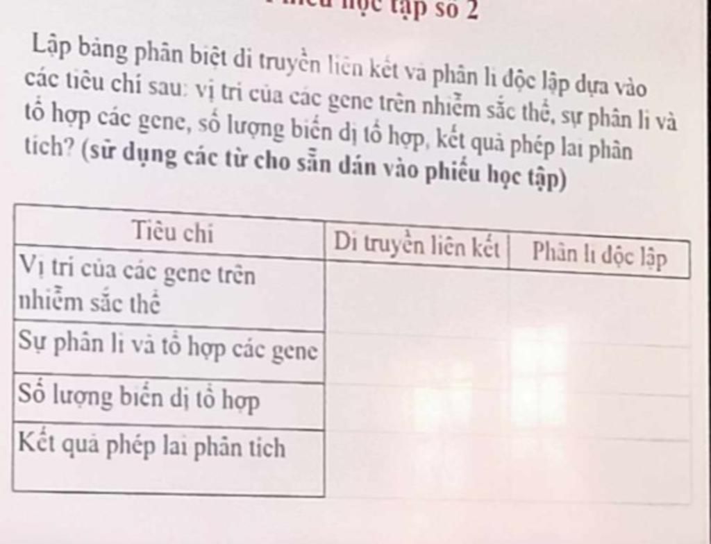 · Số lượng biến dị tổ hợp thấp do gene liên kết với nhau trên cùng một nhiễm sắc thể.