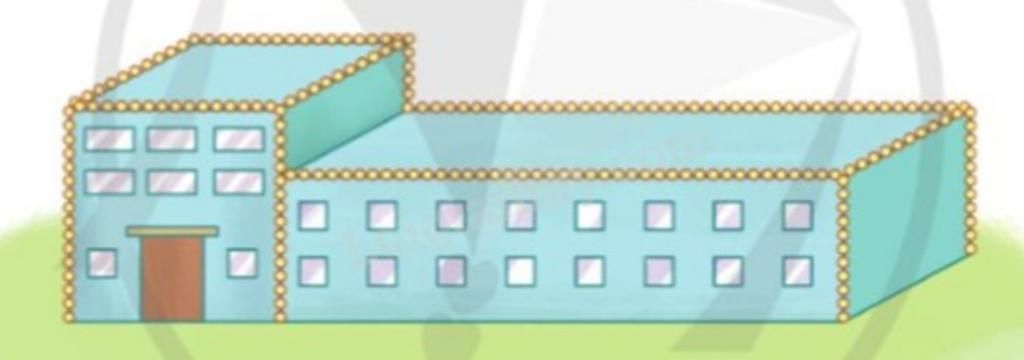 Tổng độ dài dây đèn sáng màu ở khối nhà có dạng hình hộp chữ nhật là: