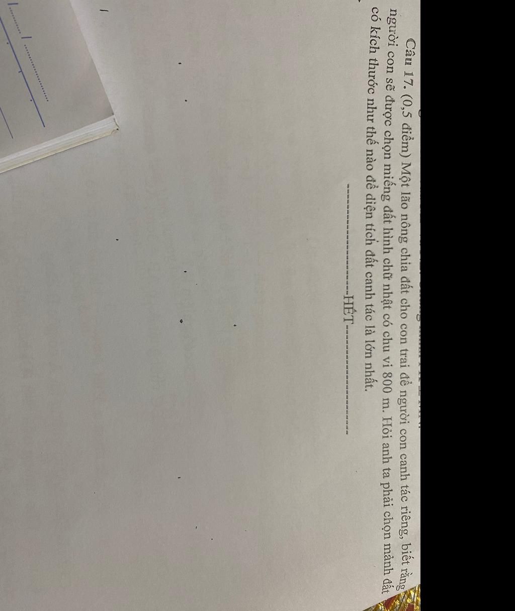 `800/2-x=400-x(m)` là chiều rộng mảnh đất