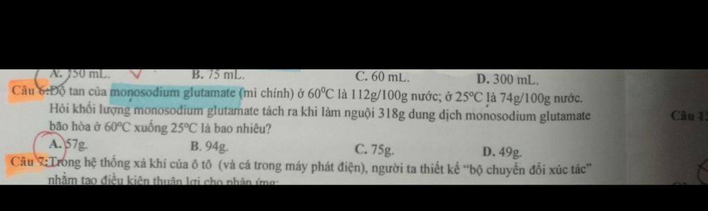 Khối lượng monosodium glutamate trong `318g` dung dịch bão hòa ở `60°C` là: