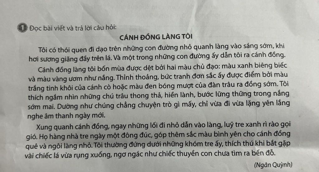 " Tôi có thói quen đi dạo trên những con đường nhỏ quanh làng vào sáng sớm, khi hơi sương giăng đầy trên lá. "