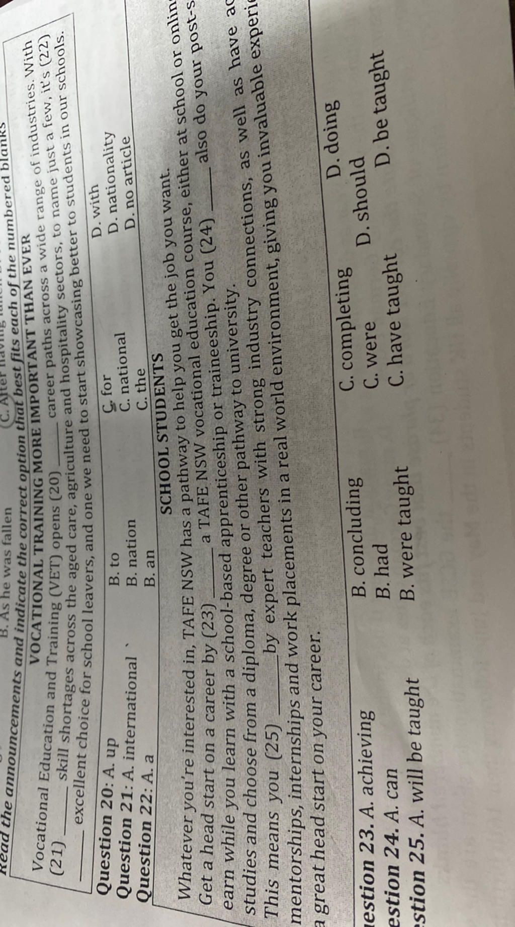 20 A 21 C 22 C 23 C 24 D 25 B