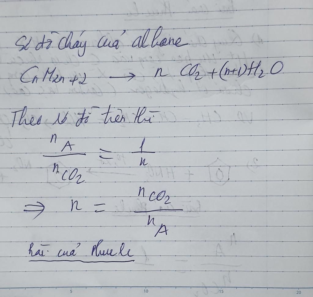 Cho e hỏi tại sao trong alkane A `C_nH_(2n+2)` thì `n=(n_(CO2))/(n_A)` vậy ạ