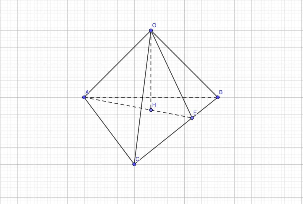 Cho tứ diện OABC có OA, OB, OC đôi một vuông góc với nhau, vẽ OE ⊥ BC, OH ⊥ AE. Chứng minh OH ⊥ AB