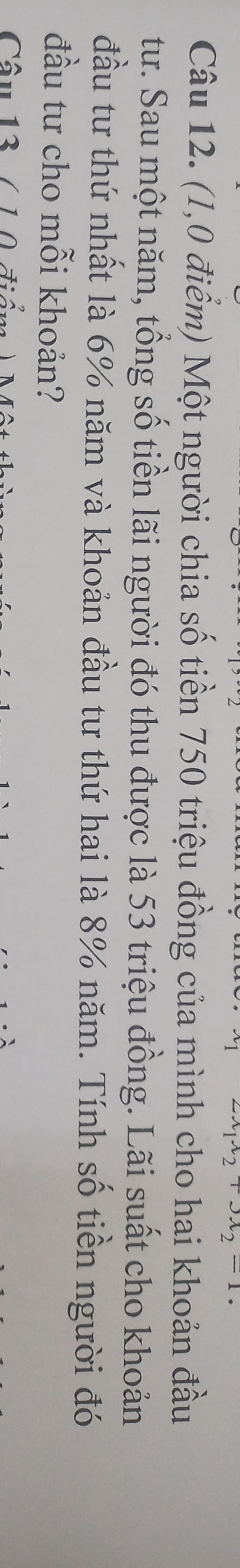 vì tổng số tiền lãi là `53 ` triệu đồng nên ta có pt :