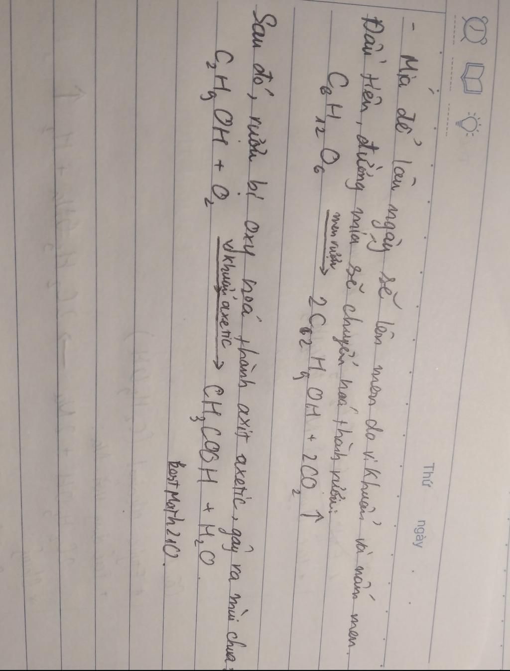 Tại sao khi để đoạn mía lâu ngày trong không khí có mùi giấm. Giải thích và viết phương trình