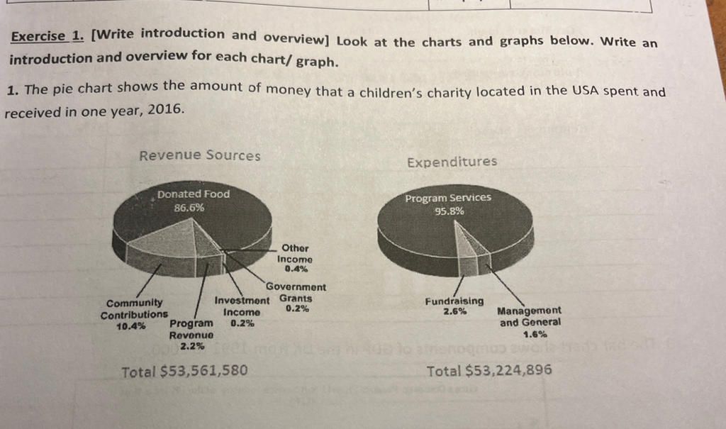 Exercise 1. [Write introduction and overview] Look at the charts and graphs below. Write an