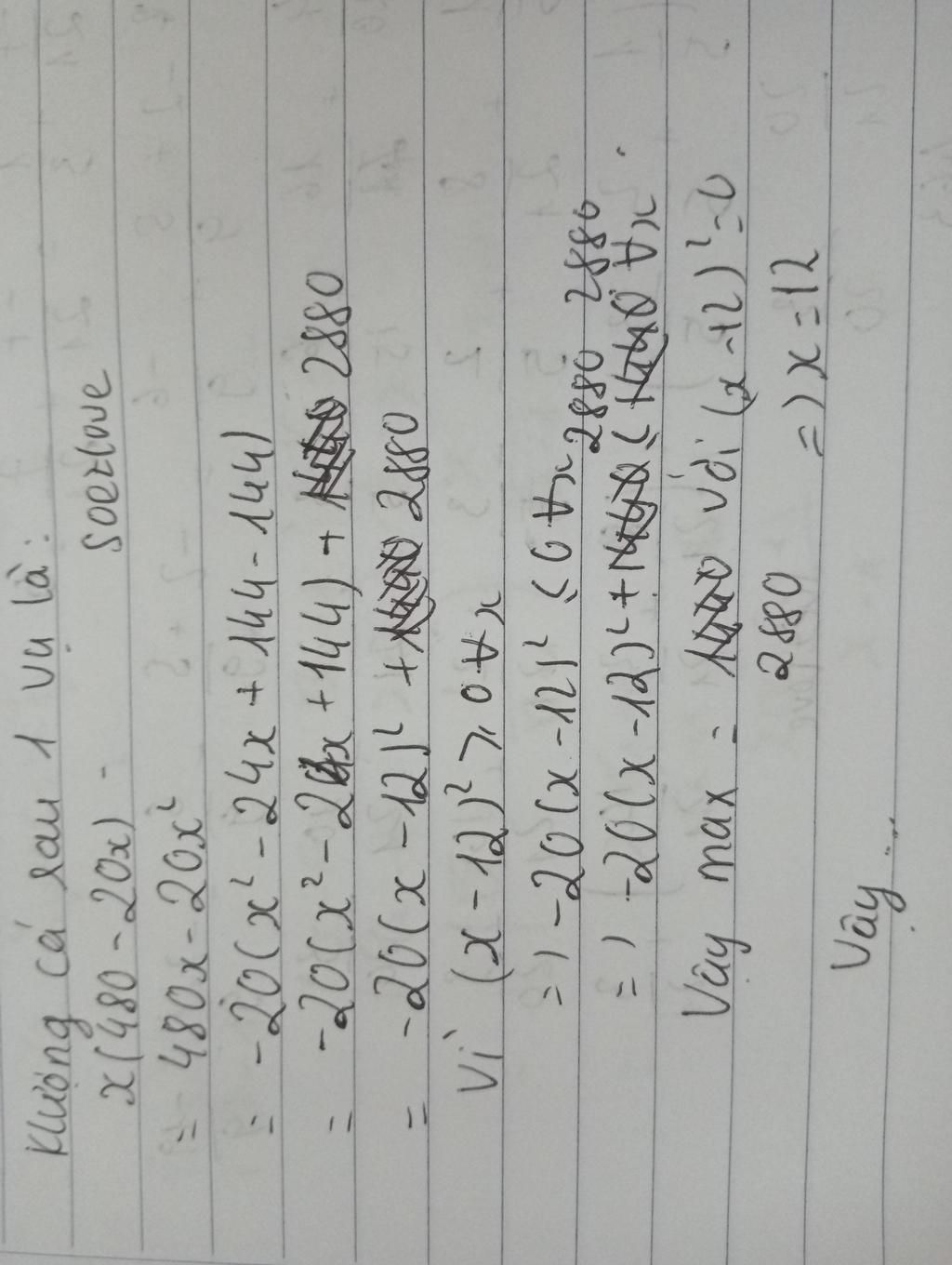 `A_(max)` khi `20(x - 12)^2` đạt min