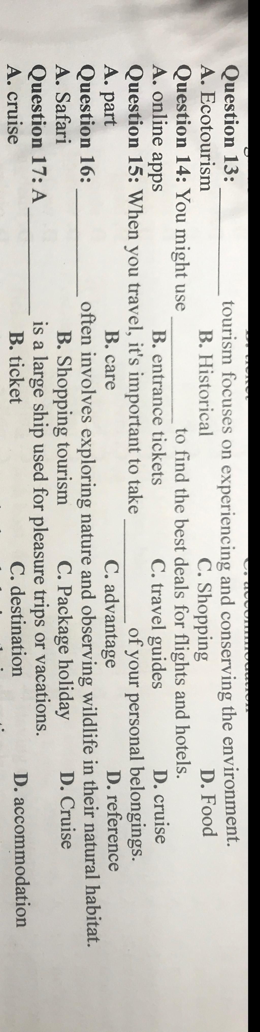 Giải thích: Ecotourism tourism là du lịch sinh thái.