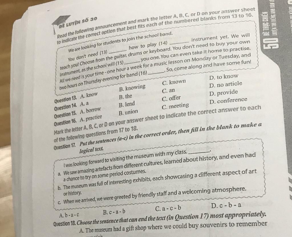 Lm giúp mk từ câu 13 đến câu 17 vs ạ,ai lm đng mk cho 5 sao và ctlhn ạ
