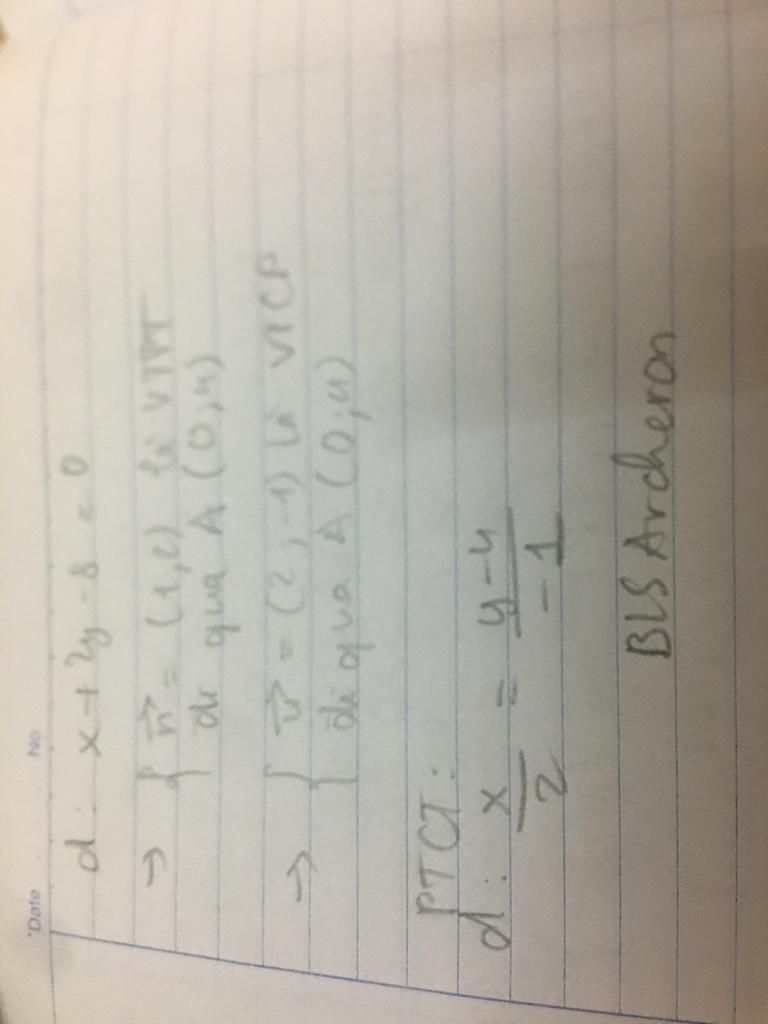 Đường thẳng d có tổng quát là : x+2y-8=0 . Ptr chính tắc là ?