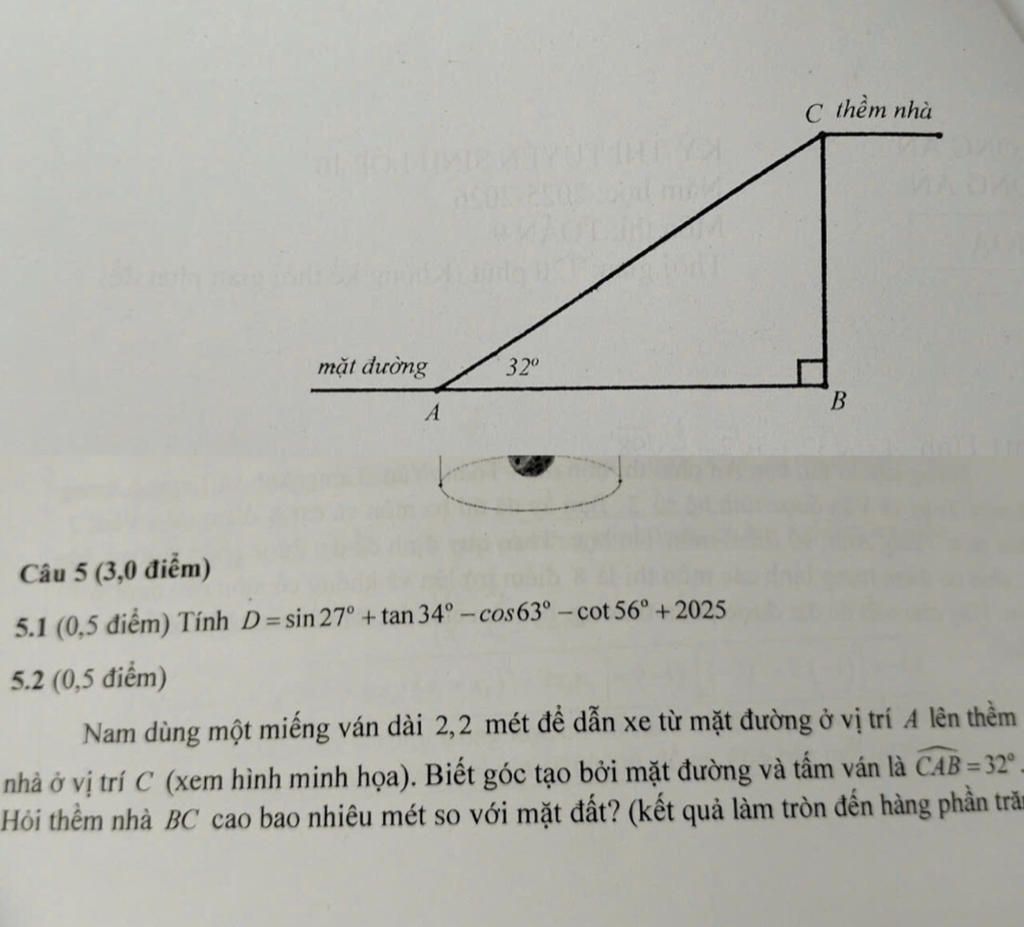 `D=sin27^o +tan34^o-cos63^o-cot56^o+2025`