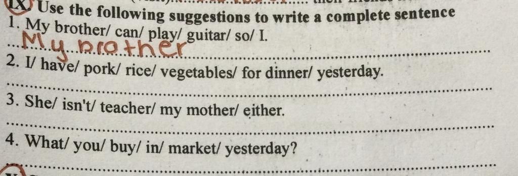 1, My brother can play the guitar, and so can I.