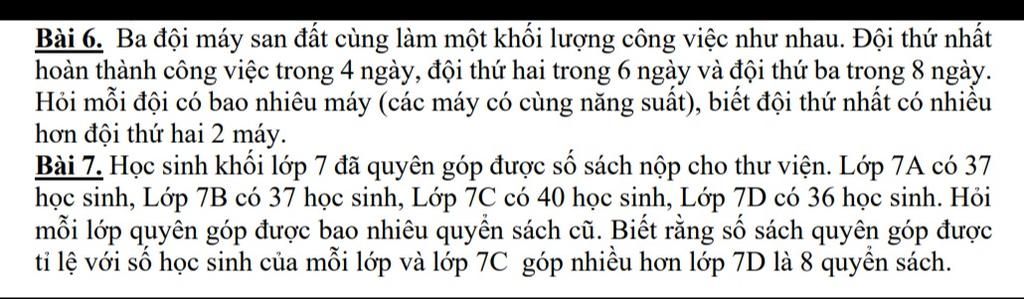 do số quyển sách quyên góp tỉ lệ với số học sinh mỗi lớp nên ta có: