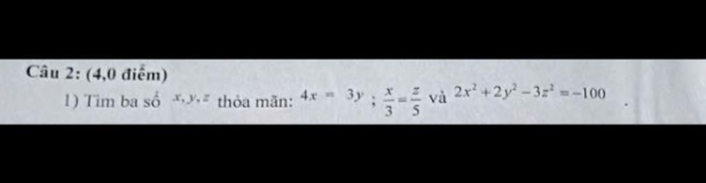 `(2x^2)/(18)=(2y^2)/(32)=(3z^2)/(75)=(2x^2+2y^2-3z^2)/(18+32-75)=(-100)/(-25)=4` (vì `2x^2+2y^2-3z^2=100`)