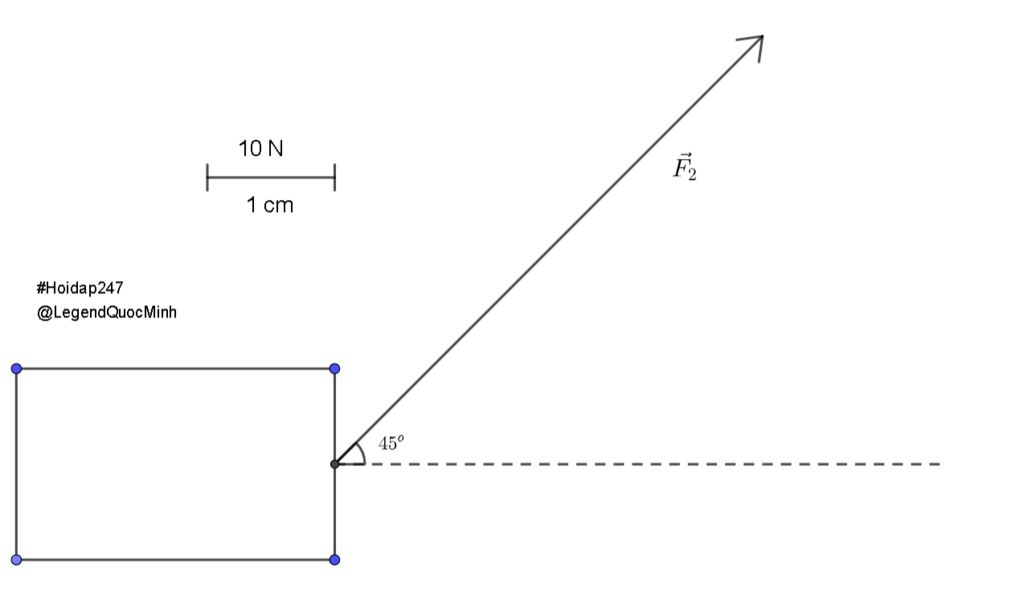 lực F2 có phương ,hợp với phương ngang 1 góc 45 độ ,chiều từ trái sang phải,hướng lên trên ,độ lớn 10N