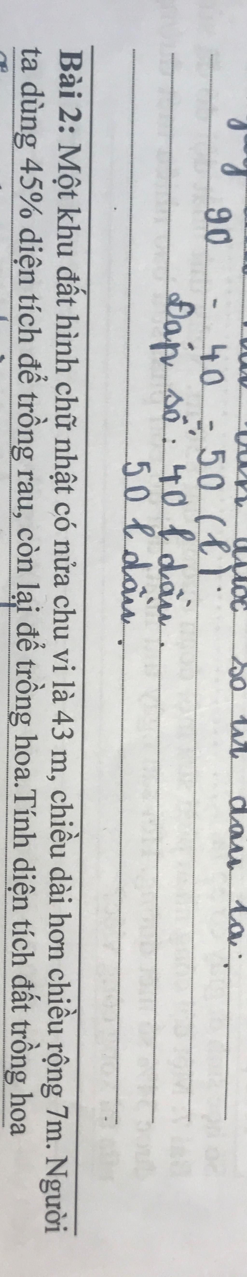 Phần trăm diện tích trồng hoa : `100-45=55%`