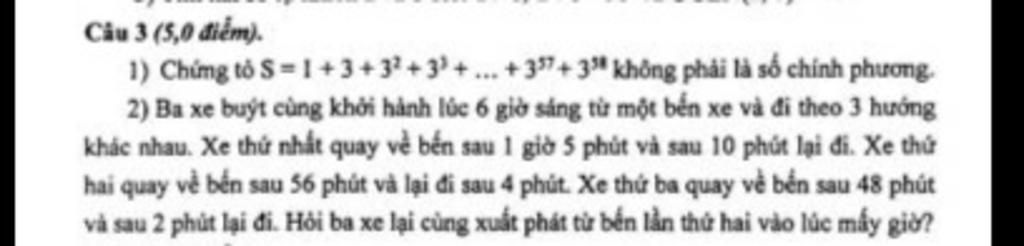 2) Ba xe buýt cùng khởi hành lúc 6 giờ sáng từ một bến xe và đi theo 3 hướng