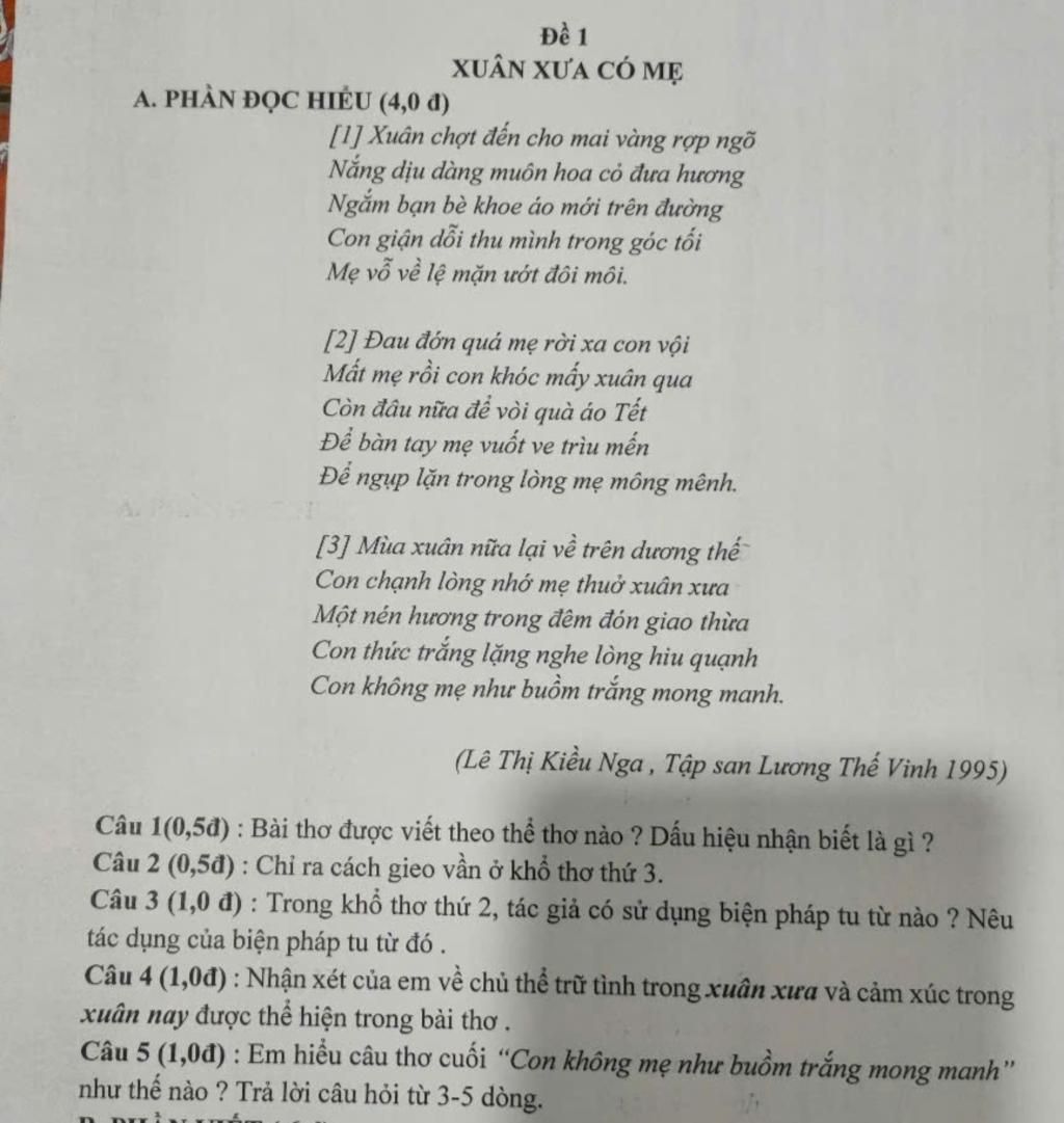 A. PHẦN ĐỌC HIỂU (4,0 đ)
