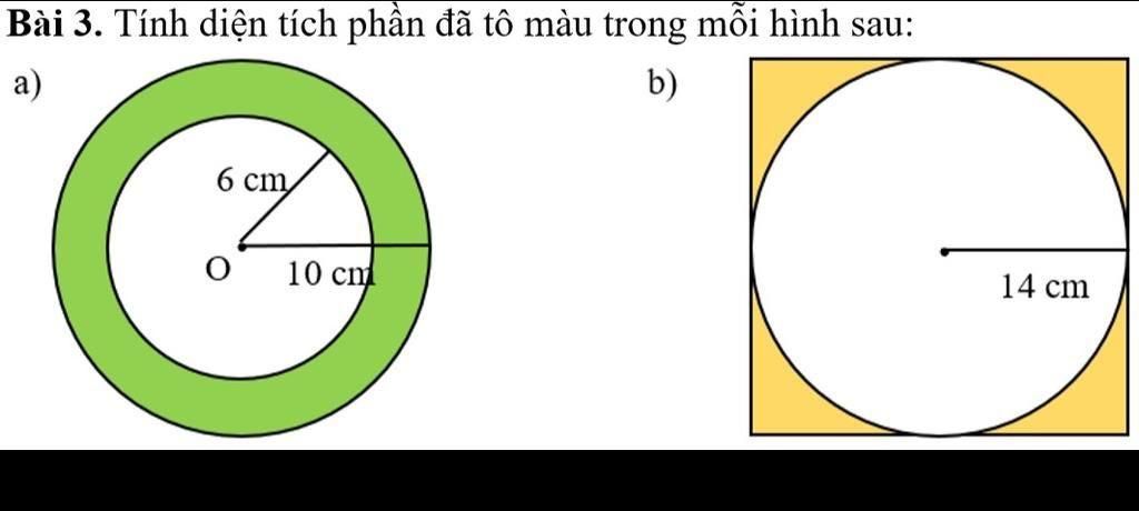 Diện tích tô màu là: